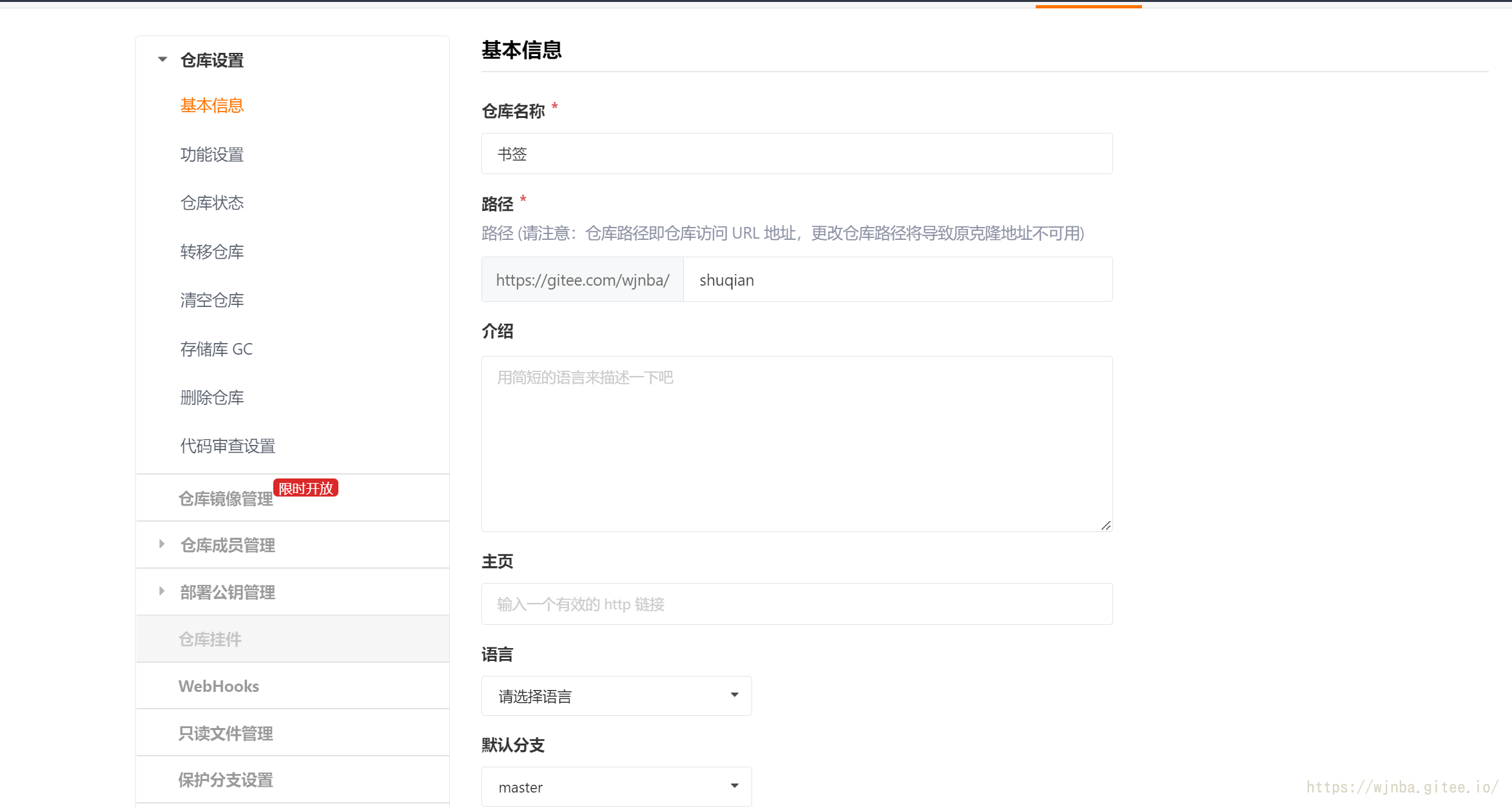 一、在码云上创建一个仓库,用来保存书签。